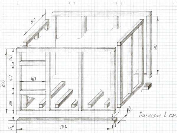 Прежде чем как построить конуру, нужно представить ее чертеж! Не обязательно составлять специальный чертеж для будки, так как конструкция не сложная. Можно просто нарисовать схему на простом листе бумаги и определить на ней размеры сооружения.