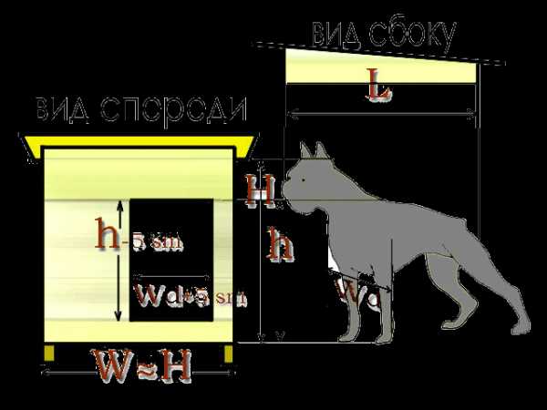 - Сама же высота будки должна быть чуть выше высоты пса в холке – нужно добавить к значению 5-8 см.