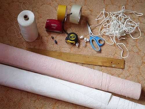 Шнур снабжается фиксатором для осуществления поднятия и сбора шторы. Низ ленты или шнура можно оформить несколькими или одной декоративной бусиной. Обои возможно украсить элементами скрапбукинга.