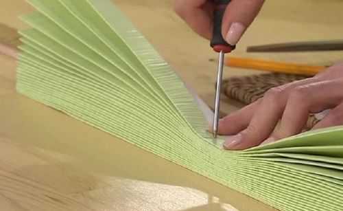 После проведения этих работ обои вырезают по размеру заготовки и складывают гармошкой с полосками шириной 3 — 5 см. Это тот вариант, при котором жалюзи не будут выглядеть грубо и неопрятно.