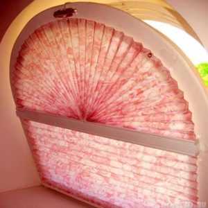 - Шторы-плиссе для круглых и арочных окон – обычно такой тип штор имеет форму веера, что не только смотрится необычно и красиво, но и играет важную роль защитника от света.