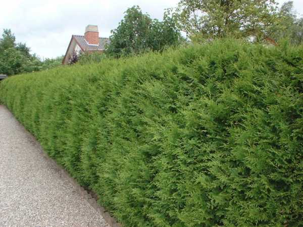 Это растение относится к семейству кипарисовых. Изгородь из туи может вырасти до 20 м высотой. Растение хорошо переносит стрижку, из нее можно вырезать садовые фигуры. Кроме того, туя наполняет воздух полезными фитонцидами.