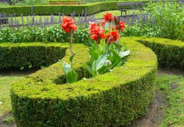 Самшит – одно из лучших растений для живой красивой изгороди, благодаря легкости формования кроны. Кустарник часто используется для создания сложных орнаментов: