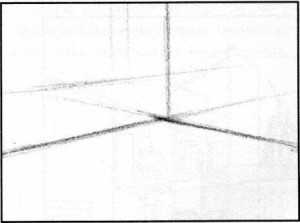 Прежде всего, успешное выполнение рисунка интерьера с натуры зависит от правильного выбора точки зрения, линии горизонта и точек схода параллельных прямых. При рисунке помещения линии горизонта будут располагаться на уровне глаз сидящего или стоящего за мольбертом человека. В зависимости от местоположения рисующего перспектива его рисунка будет угловой или фронтальной.