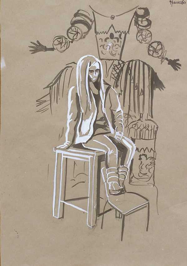 И последний рисунок — девочки 13 лет, но младше других, учащейся третий год, рисовавшей до этого года человека совсем не цепко, а в этом году зарисовавшей лучше: