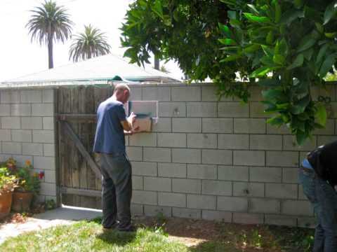 - На поверхность, оставшуюся не заклеенной, наносится краска для бетонного забора.