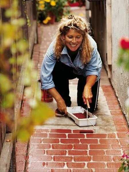 Покраска бетонной дорожки – это вариант для тех, кто уже уложил тротуар. Изменить цвет можно не только у бетонного, но и плиточного, каменного покрытия.