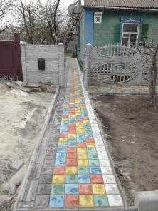 - Покрытие защищает бетон от проникновения воды внутрь пор, продляет тем самым срок службы приусадебного тротуара;