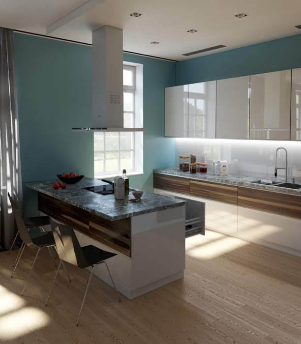 Так что кухня должна быть оформлена не только современно и красиво, но и практично, иначе вся привлекательность потолочной отделки быстро исчезнет.