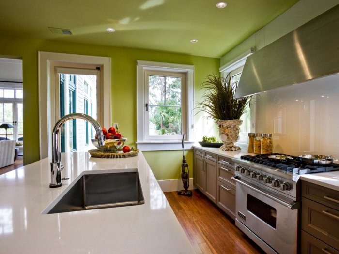 Чтобы покрашенный потолок на кухне выглядел так, нужна тщательная подготовка поверхности