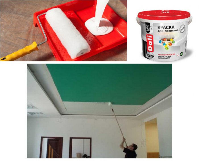 Еще один недостаток крашенных потолков — при протекании остаются разводы, которые можно только закрасить. Покрасить только поврежденную часть удается редко — получаются разные оттенки. Приходится красить весь потолок целиком.