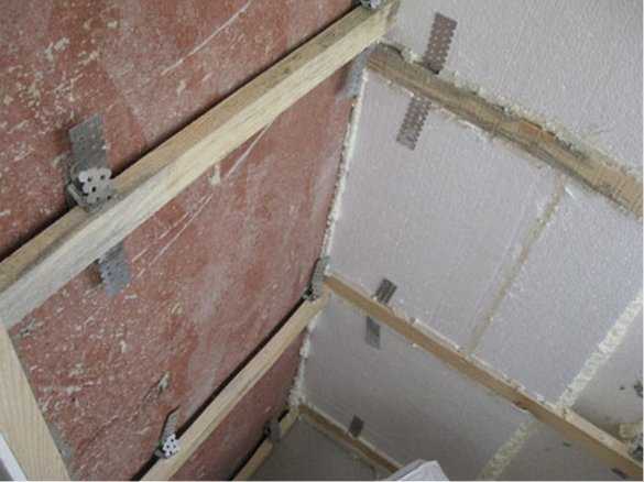 - Поверх слоя гидроизоляции монтируют обрешетку из специальных оцинкованных металлических профилей или деревянных брусков толщиной 50 мм. Расстояние между брусками должно быть равно размерам плит утеплителя. Пенополистирол, пенопласт или минеральная вата плотно укладываются между элементами обрешетки. Процесс монтажа обрешетки и укладки минеральной ваты показан на фото № 1 и № 3.