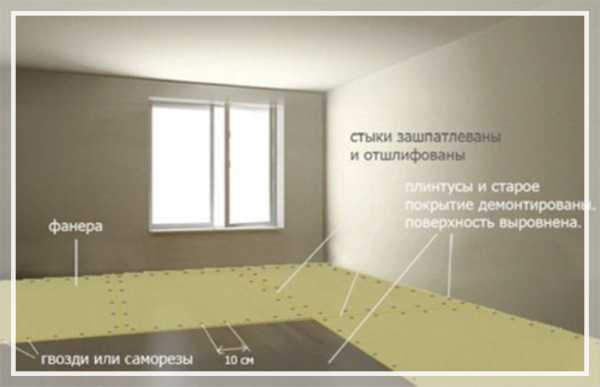 ΠΡΠΆΠ½ΠΎ ΡΡΠΈΡΡΠ²Π°ΡΡ, ΡΡΠΎ Π½Π° ΡΠ΅ΡΠ½ΠΎΠ²ΠΎΠΉ Π±Π΅ΡΠΎΠ½ Π½Π΅Π»ΡΠ·Ρ ΠΏΡΠΈΠΊΠ»Π΅ΠΈΠ²Π°ΡΡ Π»ΠΈΠ½ΠΎΠ»Π΅ΡΠΌ, ΠΊΠΎΡΠΎΡΡΠΉ Π½Π΅ ΠΈΠΌΠ΅Π΅Ρ ΡΠΊΠ°Π½ΠΎΠΉ ΠΎΡΠ½ΠΎΠ²Ρ. Π ΡΠ°ΠΊΠΎΠΌ ΡΠ»ΡΡΠ°Π΅ Π½Π΅ΠΎΠ±Ρ ΠΎΠ΄ΠΈΠΌΠΎ ΠΏΡΠΎΠ»ΠΎΠΆΠΈΡΡ ΡΠ»ΠΎΠΉ ΡΠ°Π½Π΅ΡΡ ΠΈΠ»ΠΈ ΠΠ‘Π.