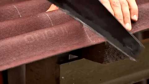 - Шаг 3. Теперь переверните лист, и впадины станут этими же вершинками. Надрежьте и их, а потом переломите ондулин.