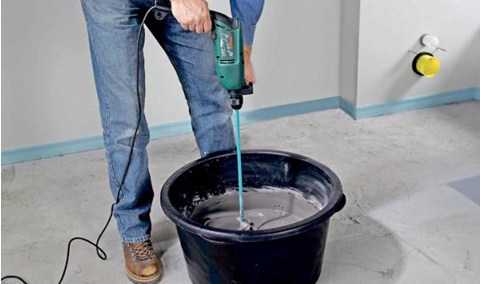 Соотношение компонентов и пропорции должны соблюдаться тем, которые заявлены производителем. Перемешивать лучше миксером – насадкой на дрель.