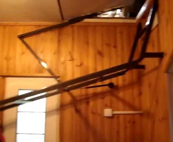 ΠΡΠΈ ΡΠ°ΠΌΠΎΡΡΠΎΡΡΠ΅Π»ΡΠ½ΠΎΠΉ ΡΠ±ΠΎΡΠΊΠ΅ ΠΌΠ΅Ρ Π°Π½ΠΈΠ·ΠΌΠ° Π΄Π»Ρ ΡΠΏΡΡΠΊΠ°Π½ΠΈΡ Π²ΡΠ΅ΠΉ ΠΊΠΎΠ½ΡΡΡΡΠΊΡΠΈΠΈ Π²Π½ΠΈΠ·, ΠΏΠΎΠ΄Π²Π΅ΡΡ Π»ΡΡΡΠ΅ Π·Π°ΠΊΡΠ΅ΠΏΠ»ΡΡΡ Π½Π° Π»Π΅ΡΡΠ½ΠΈΡΠ½ΡΡ ΡΡΠΎΠΉΠΊΠ°Ρ ΠΏΡΠΈ ΠΏΠΎΠΌΠΎΡΠΈ ΡΡΠ°Π»ΡΠ½ΡΡ Ρ ΠΎΠΌΡΡΠΎΠ², Π²ΠΎΠ·ΠΌΠΎΠΆΠ½ΠΎ, ΡΠΎ ΡΠΊΠ²ΠΎΠ·Π½ΠΎΠΉ Π±ΠΎΠ»ΡΠΎΠ²ΠΎΠΉ ΠΈΡ ΡΠΈΠΊΡΠ°ΡΠΈΠ΅ΠΉ ΠΊ ΠΎΠΏΠΎΡΠ΅. Π£Π΄Π΅ΡΠΆΠΈΠ²Π°ΡΡΡΡ Π² ΠΎΠΏΡΡΠ΅Π½Π½ΠΎΠΌ ΡΠΎΡΡΠΎΡΠ½ΠΈΠΈ ΡΠ΅Π»Π΅ΡΠΊΠΎΠΏΠΈΡΠ΅ΡΠΊΠ°Ρ Π»Π΅ΡΡΠ½ΠΈΡΠ° ΠΌΠΎΠΆΠ΅Ρ ΠΊΠ°ΠΊ ΠΏΠΎΠΊΡΠΏΠ½ΡΠΌΠΈ ΠΊΠΎΠ»Π΅Π½ΡΠ°ΡΡΠΌΠΈ ΡΡΡΠ°Π³Π°ΠΌΠΈ, ΡΠ°ΠΊ ΠΈ ΠΎΠ±ΡΡΠ½ΡΠΌΠΈ ΡΡΠΎΡΠΈΠΊΠ°ΠΌΠΈ. ΠΠ»Ρ ΠΊΡΡΡΠΊΠΈ Π»ΡΠΊΠ°, ΠΊΡΠΎΠΌΠ΅ ΠΏΠΎΠ΄Π²Π΅ΡΠΎΠ², ΠΏΠΎΠ½Π°Π΄ΠΎΠ±ΡΡΡΡ ΠΏΡΡΠΆΠΈΠ½Ρ, ΠΊΠΎΡΠΎΡΡΠ΅, ΠΏΠΎΠΌΠΈΠΌΠΎ ΡΠ΄Π΅ΡΠΆΠ°Π½ΠΈΡ Π΅Π΅ Π² Π·Π°ΠΊΡΡΡΠΎΠΌ ΠΏΠΎΠ»ΠΎΠΆΠ΅Π½ΠΈΠΈ, ΠΏΠΎΠ·Π²ΠΎΠ»ΡΡ ΠΏΠΎΠ΄Π½ΠΈΠΌΠ°ΡΡ Π΅Π΅ Π±Π΅Π· ΠΎΡΠΎΠ±ΡΡ ΡΡΠΈΠ»ΠΈΠΉ. ΠΠΏΡΠΎΡΠ΅ΠΌ, ΡΠ°ΠΊΠΈΠΌΠΈ ΠΏΡΡΠΆΠΈΠ½Π°ΠΌΠΈ ΠΌΠΎΠΆΠ½ΠΎ ΡΠ½Π°Π±Π΄ΠΈΡΡ ΠΈ Π²Π΅ΡΡ Π½ΠΈΠ΅ Π²ΡΠ΄Π²ΠΈΠΆΠ½ΡΠ΅ ΡΠ΅ΠΊΡΠΈΠΈ Π»Π΅ΡΡΠ½ΠΈΡΡ (Π΄Π»Ρ ΠΏΠΎΠ΄ΠΎΠ±Π½ΠΎΠΉ ΠΎΠΏΠ΅ΡΠ°ΡΠΈΠΈ ΠΈΡΠΏΠΎΠ»ΡΠ·ΡΡΡΡΡ Π΄Π°ΠΆΠ΅ Π±Π»ΠΎΠΊΠΈ, ΠΎ ΠΊΠΎΡΠΎΡΡΡ ΡΠ΅ΡΡ ΠΏΠΎΠΉΠ΄Π΅Ρ Π΄Π°Π»ΡΡΠ΅).