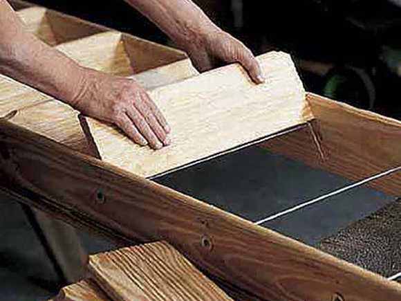 ΠΡΡΠ³Π°Ρ ΠΎΡΠΊΠΈΠ΄Π½Π°Ρ ΡΠ΅ΡΠ΄Π°ΡΠ½Π°Ρ Π»Π΅ΡΡΠ½ΠΈΡΠ° ΡΠ²ΠΎΠΈΠΌΠΈ ΡΡΠΊΠ°ΠΌΠΈ Π΄Π΅Π»Π°Π΅ΡΡΡ Π½Π° Π½Π°ΠΊΠ»ΠΎΠ½Π½ΡΡ ΡΠ΅ΡΠΈΠ²Π°Ρ Ρ ΠΏΠΎΠ»Π½ΠΎΡΠ΅Π½Π½ΡΠΌΠΈ ΡΡΡΠΏΠ΅Π½ΡΠΌΠΈ Π²ΠΌΠ΅ΡΡΠΎ ΠΏΠ΅ΡΠ΅ΠΊΠ»Π°Π΄ΠΈΠ½. ΠΠ΄Π½Π° Π΄ΠΎΡΠΊΠ° ΠΆΠ΅ΡΡΠΊΠΎ ΡΠΈΠΊΡΠΈΡΡΠ΅ΡΡΡ Π½Π° ΡΡΠ΅Π½Π΅, ΠΎ ΡΠ΅ΠΌ ΠΌΡ ΡΠΆΠ΅ ΡΠΏΠΎΠΌΠΈΠ½Π°Π»ΠΈ Π²ΡΡΠ΅. Π Π½Π΅ΠΉ ΠΏΡΠΈΠΊΡΡΡΠΈΠ²Π°ΡΡΡΡ ΠΏΠ΅ΡΠ»ΠΈ Π΄Π»Ρ ΠΌΠΎΠ½ΡΠ°ΠΆΠ° ΠΏΠΎΠ΄Π²ΠΈΠΆΠ½ΡΡ ΠΏΡΠΎΡΡΡΠΏΠ΅ΠΉ, ΠΊ ΠΊΠΎΡΠΎΡΡΠΌ, Π² ΡΠ²ΠΎΡ ΠΎΡΠ΅ΡΠ΅Π΄Ρ, ΡΠ°ΠΊΠΆΠ΅ Π½Π° ΠΏΠ΅ΡΠ»ΡΡ , ΠΊΡΠ΅ΠΏΠΈΠΌ Π²ΡΠΎΡΡΡ ΡΠ΅ΡΠΈΠ²Ρ, ΠΌΠΎΠΆΠ½ΠΎ Π΄Π°ΠΆΠ΅ Ρ ΠΏΠ΅ΡΠΈΠ»Π°ΠΌΠΈ Π½Π° ΡΡΠ΅ΡΠΆΠ½Π΅Π²ΡΡ Π±Π°Π»ΡΡΠΈΠ½Π°Ρ . Π Π²Π΅ΡΡ Π½Π΅ΠΉ ΡΠ°ΡΡΠΈ, ΠΏΠΎΠ΄ ΠΏΡΠΎΠ΅ΠΌΠΎΠΌ, Π΄Π΅Π»Π°Π΅ΠΌ ΡΠΏΠΎΡ Π΄Π»Ρ ΠΎΠΏΡΡΠΊΠ°ΡΡΠ΅ΠΉΡΡ Π΄ΠΎΡΠΊΠΈ-ΡΠ΅ΡΠΈΠ²Ρ. Π§ΡΠΎΠ±Ρ Π²ΡΡ ΠΊΠΎΠ½ΡΡΡΡΠΊΡΠΈΡ Π΄Π΅ΡΠΆΠ°Π»Π°ΡΡ Π² ΠΎΡΠΊΠΈΠ½ΡΡΠΎΠΌ Π²Π²Π΅ΡΡ ΠΏΠΎΠ»ΠΎΠΆΠ΅Π½ΠΈΠΈ, Π΅Π΅ Π½ΡΠΆΠ½ΠΎ ΡΠ΅ΠΏΠ»ΡΡΡ ΠΊΡΡΡΠΊΠΎΠΌ ΠΊ ΡΠΏΠ΅ΡΠΈΠ°Π»ΡΠ½ΠΎ ΠΏΡΠΈΠ΄Π΅Π»Π°Π½Π½ΠΎΠΉ Π½Π° ΡΡΠ΅Π½Ρ ΠΌΠ΅ΡΠ°Π»Π»ΠΈΡΠ΅ΡΠΊΠΎΠΉ ΠΏΠ΅ΡΠ»Π΅.