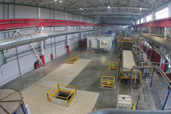 - Сушильно-красильный цех — на следующем этапе на листы наносятся цветовые пигменты. После этого формируются волнистые профили. На завершающем этапе листы направляются в сушильную камеру.