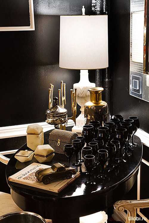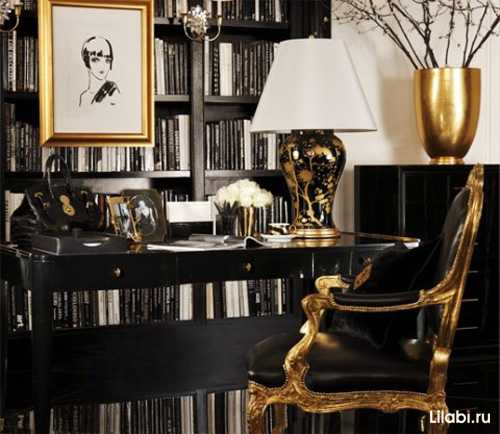 Если Вы хотите создать «королевскую» атмосферу, отдайте предпочтение черному цвету в сочетании с золотым и белым. Это классический вариант использования черного цвета в интерьере.