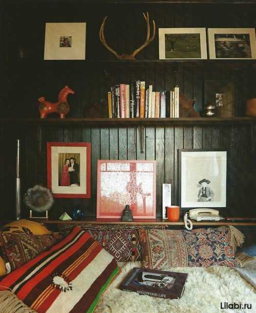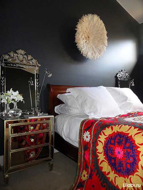 Черный подойдет и для этнического стиля. Темный цвет только подчеркнет яркие этнические узоры и предметы интерьера.