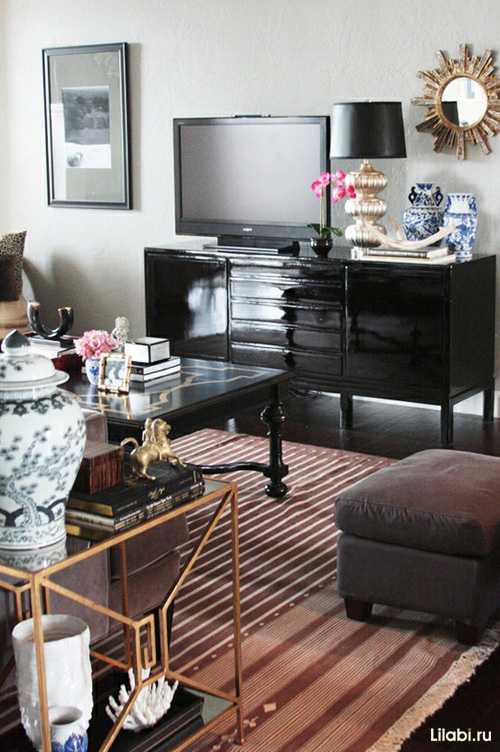 Черный цвет в интерьере гостиной