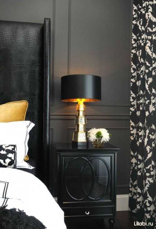 Черный цвет в интерьере спальни