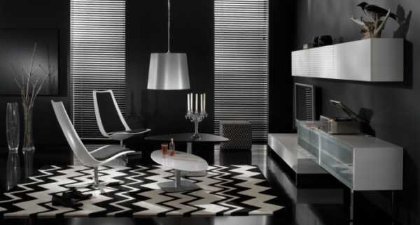 Черный всегда изысканно выглядит на контрасте с белым. Черно-белый интерьер будет выглядеть утонченно. Такое сочетание подойдет для квартиры современного холостяка, разбирающегося в моде и стилях.