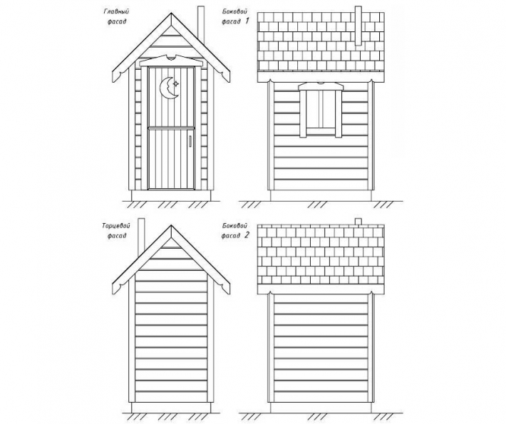 Если же Ваш проект «особенный» и отыскать его чертеж не удается, то попробуйте нанести на бумагу примерную форму каркаса туалета, а рядом предполагаемый готовый вид строения. Исходя из пропорций, нанесите все детали, которые вы хотели бы видеть в своем туалете, на бумагу, но помните, что неправильно выполненный чертёж может привести к перекосу конструкции или перерасходу материалов.