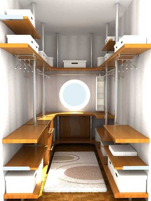 Важно. Возможны и более компактные варианты организации внутреннего пространства в гардеробной, но тогда полноценной комнатой данное помещение назвать не получится.