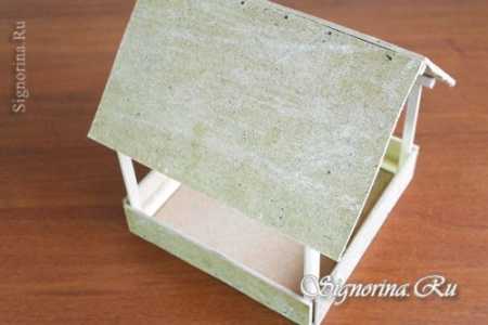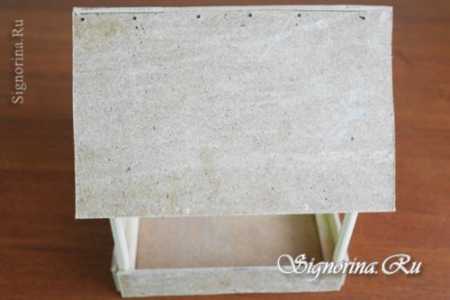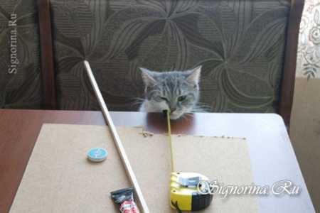 ΠΠΎΠΆΠ½ΠΎ ΠΏΠΎΡΡΡΠΏΠΈΡΡ Π½Π΅ΠΌΠ½ΠΎΠ³ΠΎ ΠΏΠΎ-Π΄ΡΡΠ³ΠΎΠΌΡ. ΠΡΠΈΠΊΠ»Π΅ΠΈΠ²Π°Π΅ΠΌ ΠΊΡΡΡΠΊΡ ΠΊΠΎΡΠΎΠ±ΠΊΠΈ ΠΏΠ΅ΡΠΏΠ΅Π½Π΄ΠΈΠΊΡΠ»ΡΡΠ½ΠΎ ΡΠ°ΠΊΠΈΠΌ ΠΎΠ±ΡΠ°Π·ΠΎΠΌ, ΡΡΠΎΠ±Ρ ΠΊΡΡΡΠΊΠ° ΡΠ»ΡΠΆΠΈΠ»Π° ΠΊΠΎΡΠΌΠΎΠ²ΠΎΠΉ ΠΏΠΎΠ΄ΡΡΠ°Π²ΠΊΠΎΠΉ, Π° Π²ΡΠΎΡΠ°Ρ ΡΠ°ΡΡΡ ΠΊΠΎΡΠΎΠ±ΠΊΠΈ Π±ΠΎΡΡΠΈΠΊΠΎΠΌ ΠΈ ΠΊΡΡΡΠ΅ΠΉ. ΠΡΠΎΠΊΠ»Π΅ΠΈΠ²Π°Π΅ΠΌ ΠΊΠΎΠ½ΡΡΡΡΠΊΡΠΈΡ ΡΠΊΠΎΡΡΠ΅ΠΌ. ΠΠ· ΠΏΡΠΎΠ²ΠΎΠ»ΠΎΠΊΠΈ Π΄Π΅Π»Π°Π΅ΠΌ Π΄Π²Π° ΠΊΡΡΡΠΊΠ°: ΡΠ³ΠΈΠ±Π°Π΅ΠΌ ΠΊΡΡΠΎΠΊ ΠΏΡΠΎΠ²ΠΎΠ»ΠΎΠΊΠΈ Π²Π΄Π²ΠΎΠ΅ ΠΈ ΠΊΠΎΠ½ΡΠ°ΠΌΠΈ ΠΏΡΠΎΠΊΠ°Π»ΡΠ²Π°Π΅ΠΌ Β«ΠΏΠΎΡΠΎΠ»ΠΎΠΊΒ» ΠΊΠΎΡΠΌΡΡΠΊΠΈ, Π·Π°ΠΊΡΡΡΠΈΠ²Π°Π΅ΠΌ ΠΈ Π·Π°Π³ΠΈΠ±Π°Π΅ΠΌ ΠΈΠ·Π½ΡΡΡΠΈ. Π‘ΠΎΠ΅Π΄ΠΈΠ½ΠΈΠ² ΠΊΡΡΡΠΊΠΈ, ΠΌΠΎΠΆΠ½ΠΎ ΠΏΠΎΠ²Π΅ΡΠΈΡΡ ΠΊΠΎΡΠΌΡΡΠΊΡ Π½Π° Π²Π΅ΡΠΊΡ. ΠΠ°ΠΊ ΡΡΠΎ ΠΌΠΎΠΆΠ½ΠΎ ΡΠ²ΠΈΠ΄Π΅ΡΡ Π½Π° ΡΠΎΡΠΎ. Π’Π΅ΠΏΠ΅ΡΡ Π½Π°ΡΡΠΏΡΡΠ΅ ΠΊΠΎΡΠΌ ΠΈ ΠΆΠ΄ΠΈΡΠ΅ Π³ΠΎΡΡΠ΅ΠΉ.