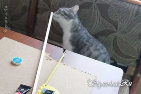 ΠΡΠΈΠ²ΡΠ·ΡΠ²Π°Π΅ΠΌ ΠΊ Π½Π΅ΠΉ Π²Π΅ΡΡΠ²ΠΎΡΠΊΡ (ΡΡΠΎΠ±Ρ Π²Π΅ΡΡΠ²ΠΊΠ° Π½Π΅ ΡΠ»Π΅ΡΠ°Π»Π°, ΠΌΡ Π΅Ρ ΠΏΡΡΡΠΈΠ»ΠΈ ΠΏΠΎ Π΄Π½Ρ, Π° Π² ΡΠ³Π»Π°Ρ ΠΏΡΠΈΠΊΡΠ΅ΠΏΠΈΠ»ΠΈ ΠΌΠ΅Π±Π΅Π»ΡΠ½ΡΠΌΠΈ ΡΠΊΠΎΠ±ΠΊΠ°ΠΌΠΈ.)