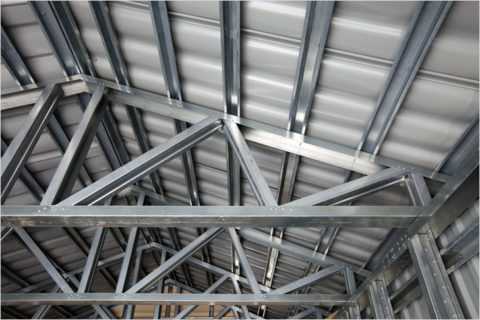 Монтаж дополнительных горизонтальных связей (перемычек) обеспечивает образование жестких рамных конструкций. Поскольку для изготовления (сборки) каркаса используется облегченный профиль, требуемая устойчивость достигается использованием большого количества связей. Так одновременно удается не превысить стоимость готового проекта без снижения надежности.