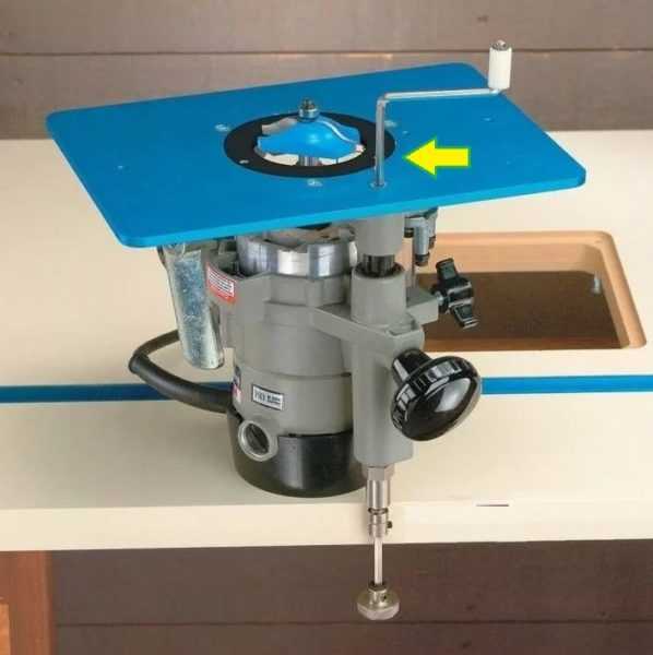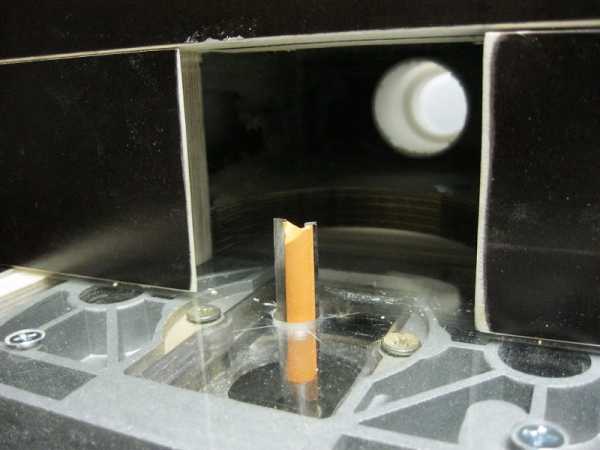 В доске стола надо сделать круглое отверстие, достаточное, чтобы прошла фреза. Слишком широкий проем закрывают добавочными кольцами — вкладышами для предотвращения задира материала во время фрезерования.