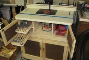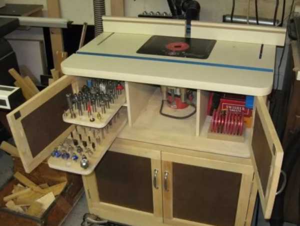 Конструкция может объединить в себе несколько функций: верстак, комод для хранения инструментов и материалов, и собственно фрезерный стол.