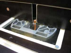 Таким образом, ручной фрезер скользит по платформе из оргстекла вдоль направляющих, которые жестко фиксируют его с двух сторон, не допуская погрешностей и ошибок.