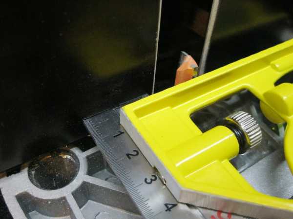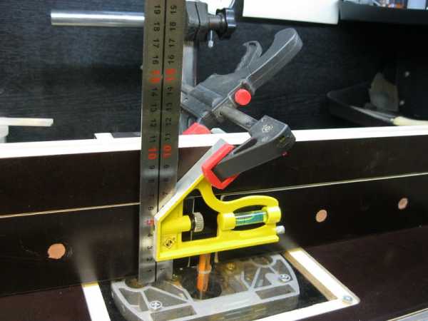 Еще одно дополнение – стальная линейка по продольной оси направляющих обрабатываемой заготовки. Практично, удобно, позволяет контролировать размер выборки, освобождает руки для других операций.