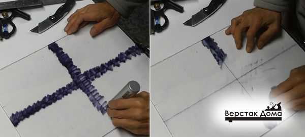 Аналогично размечают и прорезают пазы для фиксации стола.