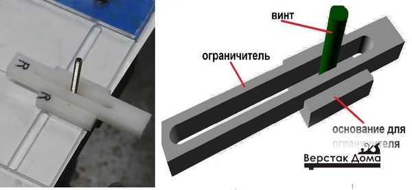 Фрезеруют в заготовках ограничителей пазы и вставляют в основания, продев винты в отверстия пазов. При необходимости, торчащие винты спиливают болгаркой и зашлифовывают заусенцы напильником.