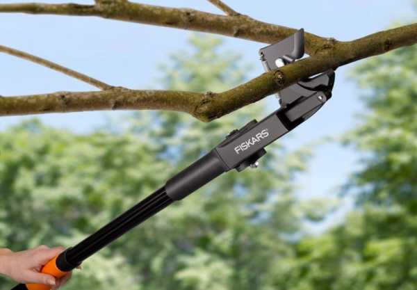 Любителям выращивать высокие деревья больше подойдёт телескопический прибор. Уже исходя из названия понятно, что он позволит быстро срезать ветки даже с верхушек, благодаря своей особенности увеличиваться в высоту.