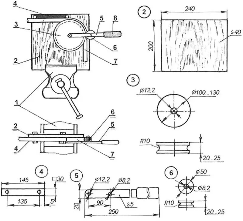 Для изготовления простого станка для выполнения гибких профильных труб потребуются следующие элементы конструкции: