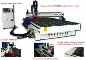 Серийный копировально-фрезерный станок по дереву, предназначенный как для плоскорельефной, так и для скульптурной резьбы. Конструкцией предусмотрено пять управляемых осей: