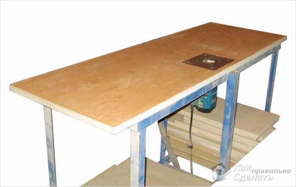 Еще одной составной частью фрезерного станка является верхняя крышка. Для ее изготовления можно использовать толстую фанеру или обрезную доску, которую необходимо дополнительно обработать, чтобы поверхность была гладкой. В центральной части столешницы должно быть выполнено технологическое отверстие, через которое и будет проходить вал электромотора.