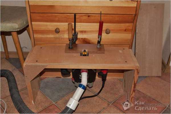 Для того чтобы сделать работу за станком еще более удобной, его можно оснастить некоторыми дополнительными элементами. Так, например, можно выполнить верхний зажим, который позволит фиксировать обрабатываемую деталь. А также не лишним будет оборудовать систему для сбора пыли, в качестве которой можно приспособить старый пылесос.
