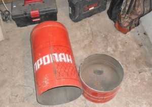 Первый вариант — самый простой. Его умельцы изготавливают или из металлических листов, или из газовых баллонов. Обязательно используются трубы и дополнительные детали. Применение газового баллона значительно сокращает процесс изготовления. Но учтите, что в баллоне может остаться газ, так что перед резкой заполните его водой.
