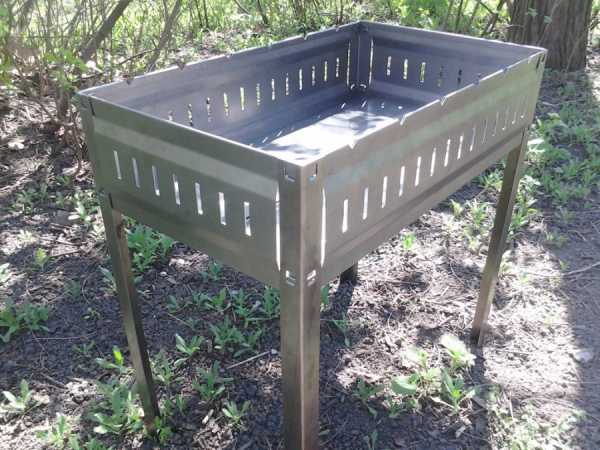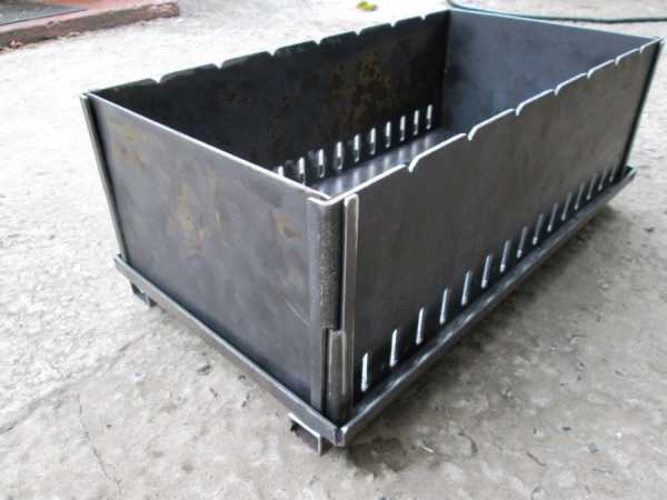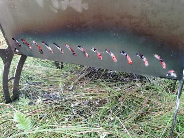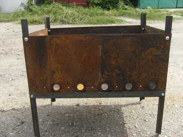 Внимание! Представленная конструкция не подразумевает наличие поддона и отверстий на дне мангала. Это Вы легко исправите, приварив к днищу или ножкам небольшие уголки и выбрав соответствующий лист металла.