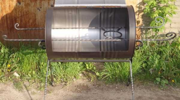 Верхняя часть конструкции оборудована зазорами для шампуров. Так, можно равномерно распределить мясо и свободно фиксировать его при вращении, обеспечивая равномерную прожарку. Причем расстояние между зазорами должно быть в 6 см. Необходимо оставить место между крайними стенками и зазорами, чтобы мясо не касалось их, а также не пригорало.
