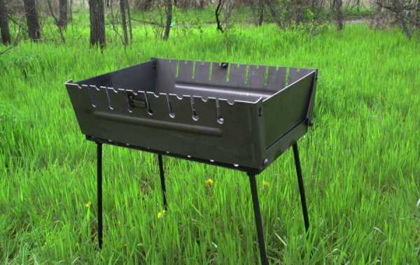 Обычный мангал имеет квадратную конструкцию. Хотя и имеют большой вес, могут переноситься. Часто он имеет съемные ножки.