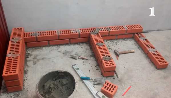 Основу выложили, далее смещаемся на половину кирпича, чтобы собрать устойчивую конструкцию. С первого до пятого ряда работаем просто по одному шаблону.