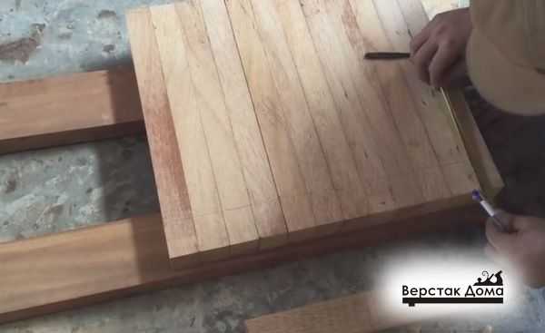 - Заготовку располагают на устойчивой плоскости для раскроя. С чертежа разметка наносится на доски. Каждую деталь следует пронумеровать.