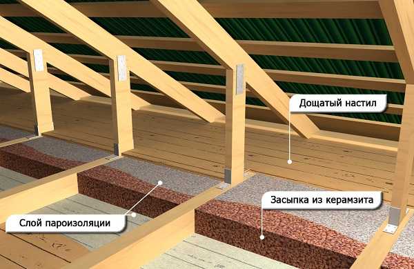 Технология утепления потолка керамзитом выглядит следующим образом.